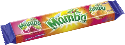 Маmba – это сочные жевательные конфеты со вкусами клубники, малины, апельсина, колы или вишни! Каждая упаковка состоит из шести жевательных конфет в индивидуальной обертке. В большой упаковке вы найдете ассорти вкусов, чтобы поделиться с друзьями.